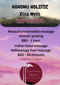 - Phone: 0274712704 — request Greenstone Retreat location